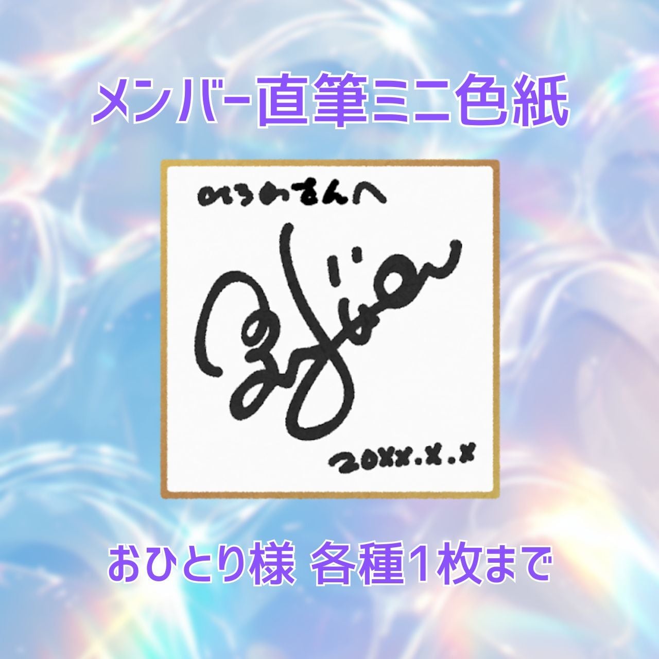 ミニサイズの色紙いっぱいにメンバーがあなたに宛ててサインや宛名、デコレーション等を施してお届けします。